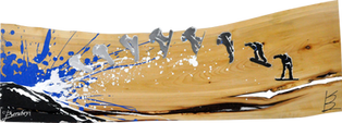 Je crée des oeuvres à partir de bois brut, d'écorces d'arbres, des panaches de cerfs et d'autres matériaux que je sélectionne et récolte moi-même sur ma ferme située en Gaspésie au Québec. J'utilise une technique mixte amalgamant le “street art”, les arts digitales, la peinture et l'ébénisterie pour créer un univers de contrastes à mi-chemin entre le RUSTIQUE et l'URBAIN.